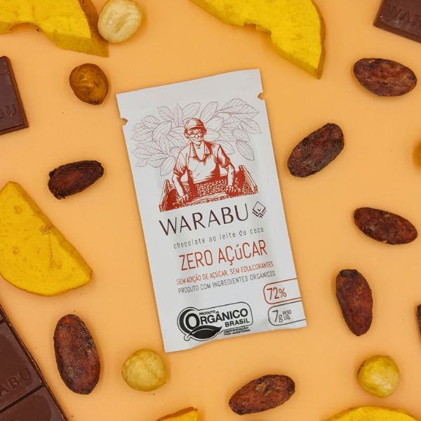O Chocolate Warabu 72% é feito com cacau orgânico da Amazônia e leite de coco vegetal, sem adição de açúcares, corantes ou edulcorantes. Um chocolate puro, de sabor intenso e textura suave, pensado para quem busca prazer com consciência.