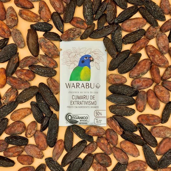 Feito com cacau orgânico amazônico e leite de coco, este chocolate Warabu traz a cremosidade vegetal perfeita combinada ao perfume exótico do cumaru de extrativismo sustentável, conhecido como a “baunilha da Amazônia”.