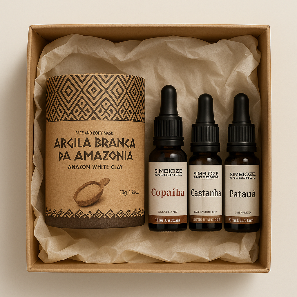 Desperte a beleza natural da sua pele com a força dos ativos amazônicos. Este combo exclusivo reúne o poder purificante da Argila Branca com os óleos vegetais mais nobres da floresta para um tratamento completo de nutrição, equilíbrio e regeneração.
