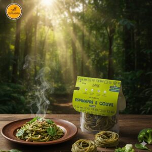 Feito com espinafre e couve naturais, este talharim artesanal é rico em fibras e vitaminas A, B e C.