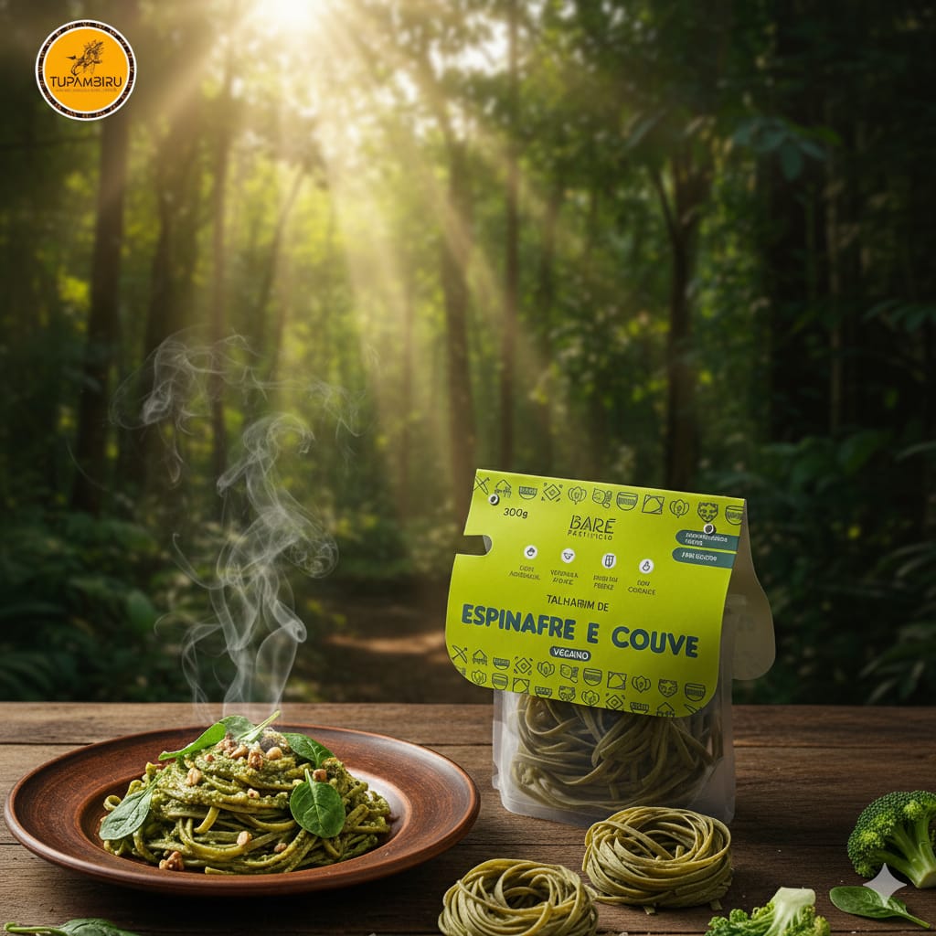 Feito com espinafre e couve naturais, este talharim artesanal é rico em fibras e vitaminas A, B e C.